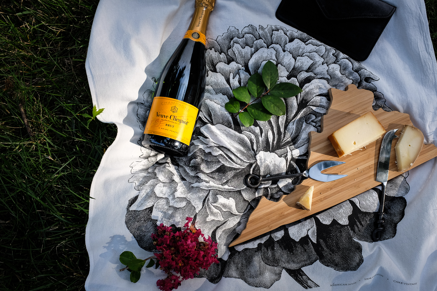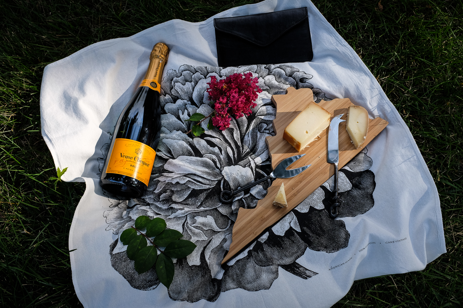 Pictured: American Heirloom Virginia cutting board // Peony tea towel and rustic cheese knives from Hydrangea of Clifton // Fulla & Fayda tote and wallet