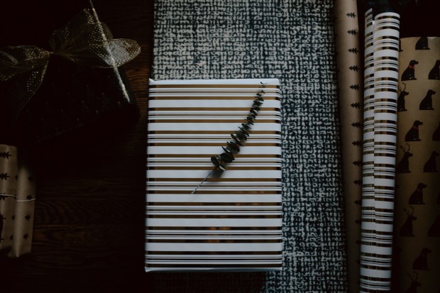 For as long as I can remember I have loved wrapping gifts, which remains one of my favorite parts of the holidays. I usually pick a theme every year, maybe a particular color or pattern, and try to incorporate a unique element to jazz up my wrapping. This year, I gravitated toward black and gold and pulled in natural elements for a bit of flare. I tied preserved magnolia leaves (left over from my wedding from Which Goose, but if you’re in Virginia you can find them on trees or on the ground all over!) and eucalyptus (Trader Joes ftw!) onto parcels with gold-embellished twine to match some of my gold-accented paper, and they came out quite nice. Not to mention, the eucalyptus smells great too! I think even plain brown or white paper would look lovely with some twine and leaves or herb sprigs tied atop, so if you’re wrapping some final gifts tonight here’s an easy way to make your gifts look beautiful and finally get them under your tree!