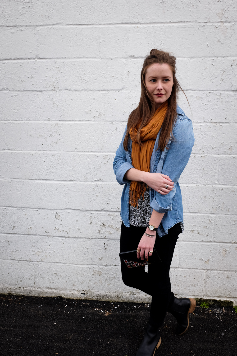 I’ve been gravitating toward neutrals and my go-to layers, like my trusty chambray, black jeans, comfortable scarves, and boots that will get me anywhere.