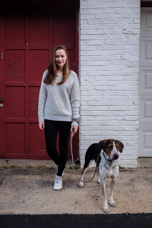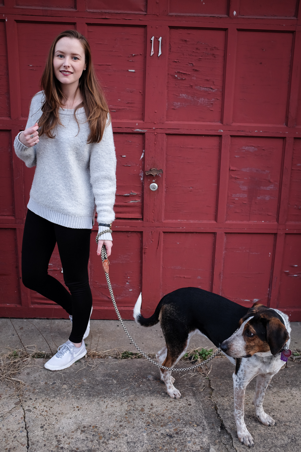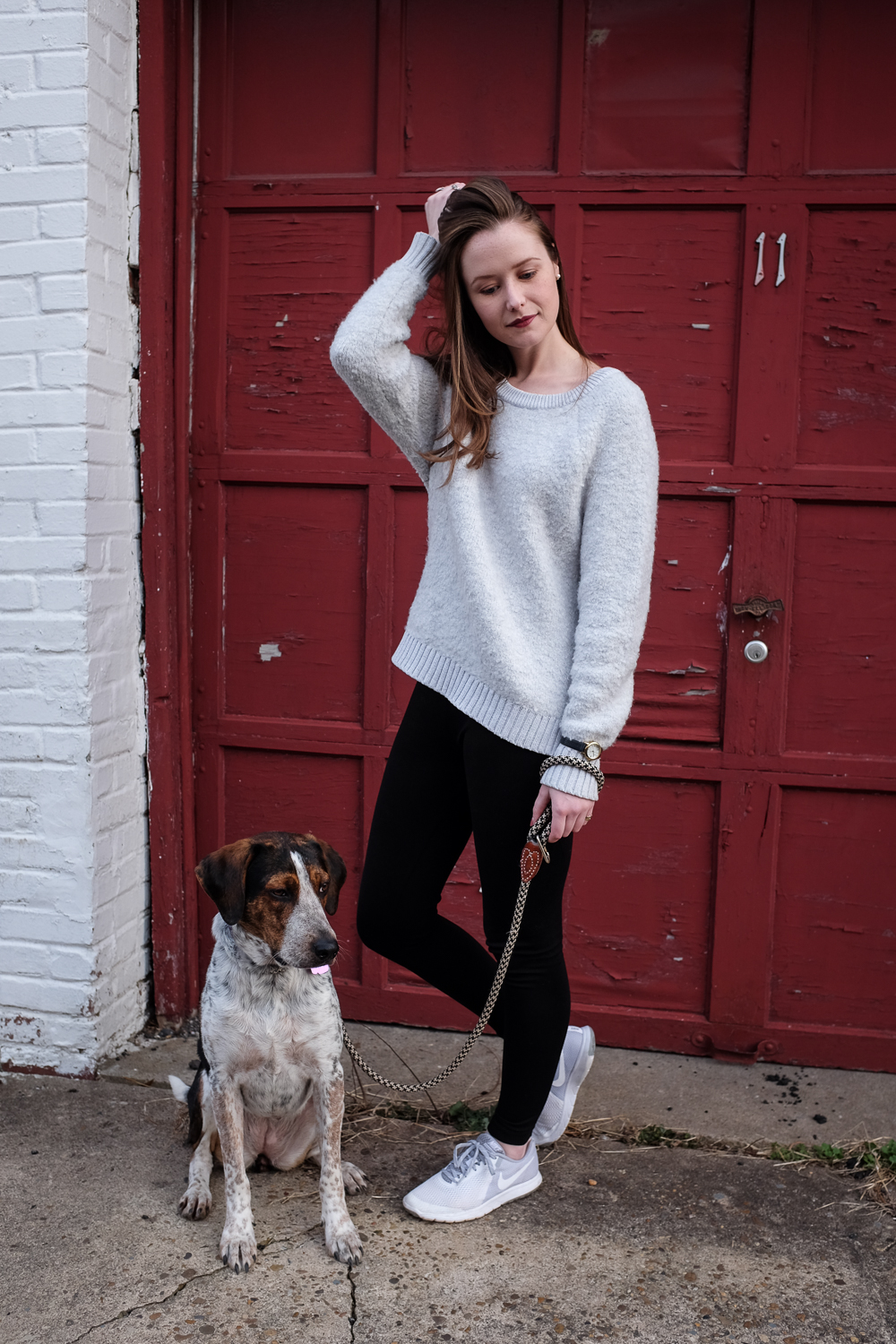 Wearing: Vince Camuto leggings, GAP sweater (on sale in “cream”!), and Nike Sneaks // Photos taken by Bryan Wallace