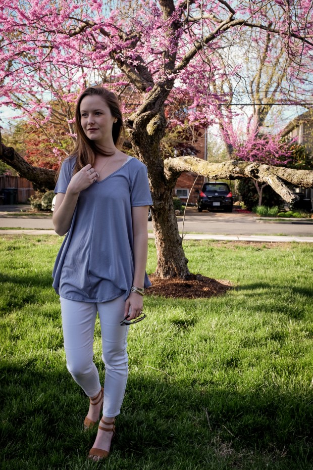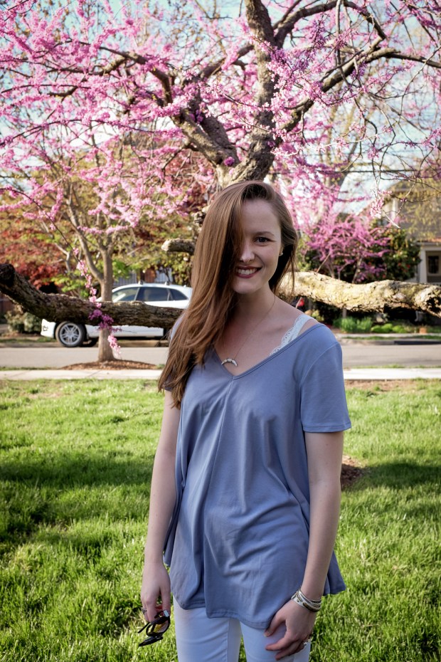 I hope it’s ok if I get a little personal and honest… I’ve always hated wearing bras, but was too self-contious to not wear one. Bralettes seem a little youthful – reminiscent of my first sports bra as an adolescent – but carry the more adult lacey details of an adult brazier (I was fascinated when I found out that was the “long word” for bra!). I was too curious about trying one, so on my next trip to T.J. Maxx I picked up a simple white Nicole Miller bralette.