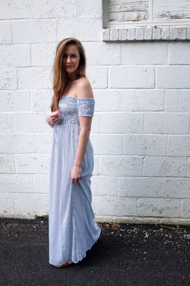 I think I’m in love… with a dress. It just happened spontaneously one day walking through my *first* love, T.J. Maxx: we were moving with purpose toward the register with a couple of household and Luna items, and the long white and navy striped dress caught my eye and we just had to be together.