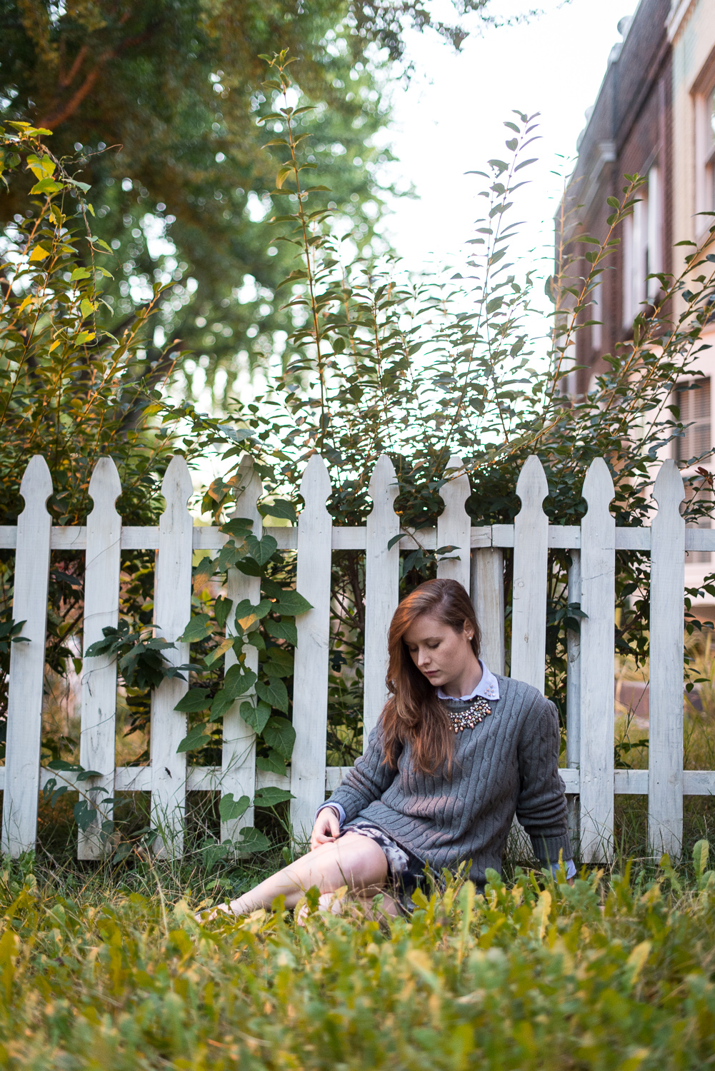 Wearing: sweater: Old Navy [stolen from T’s closet] // blue collared shirt: Zara // skirt: Michael Kors from Loehmann’s // necklace: Stella & Dot