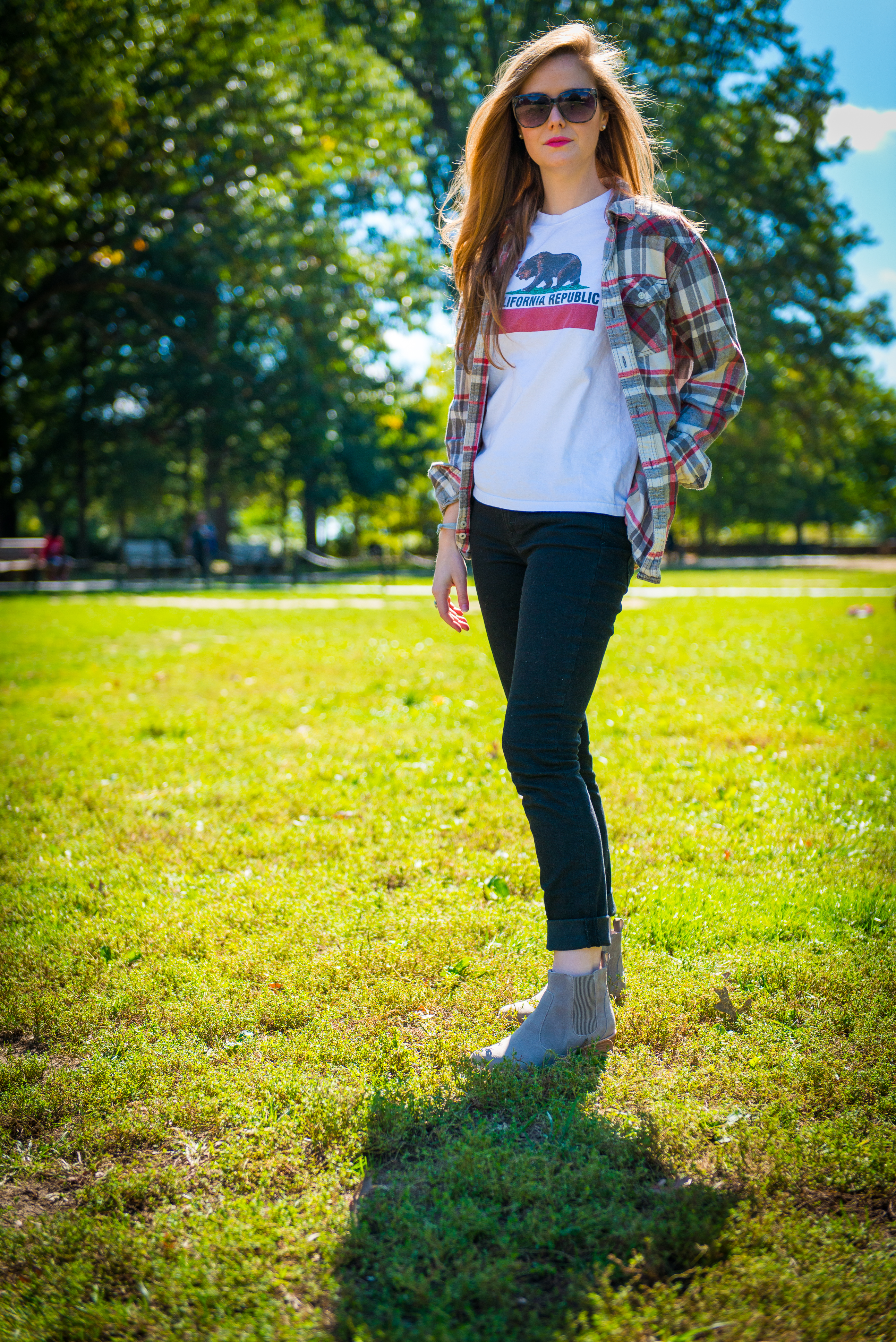 I wore this plaid-focused ensemble to a picnic brunch at Meridian Hill Park the other day and it was perfect. It was really chilly that morning – chilly enough to numb my fingers a bit and send a shiver up my spine from a cross breeze in the shade – but I was super cozy. The best part about flannel: even if it warms up, you can throw it around your waist in true 90’s style. Really, THE best thing is that plaid is inexpensive (and can easily be stolen borrowed from your brother or boyfriend’s closet), can be worn with almost anything, and hasn’t gone out of style in forever, so don’t ever get rid of it! I am almost certain that plaid will never die.