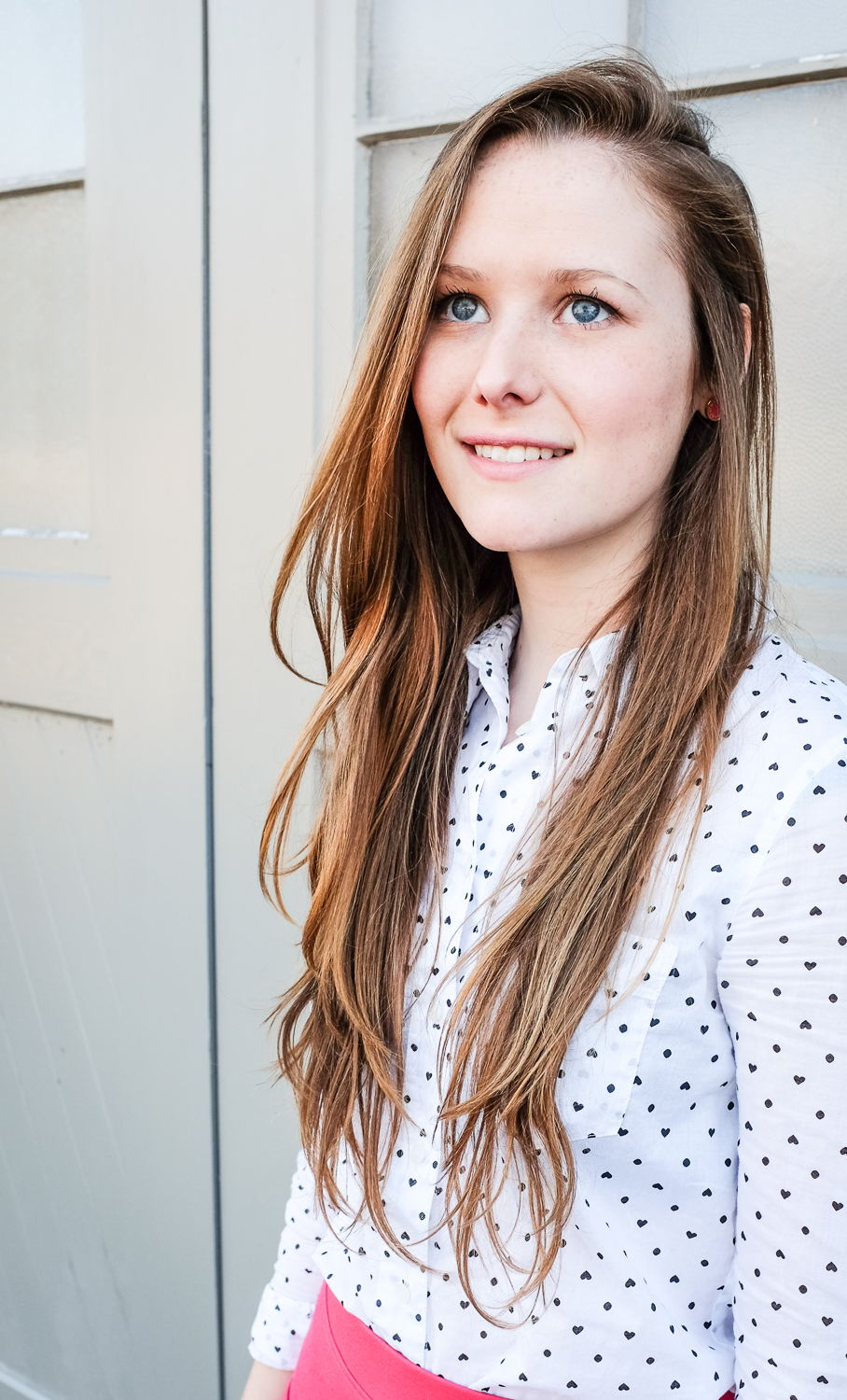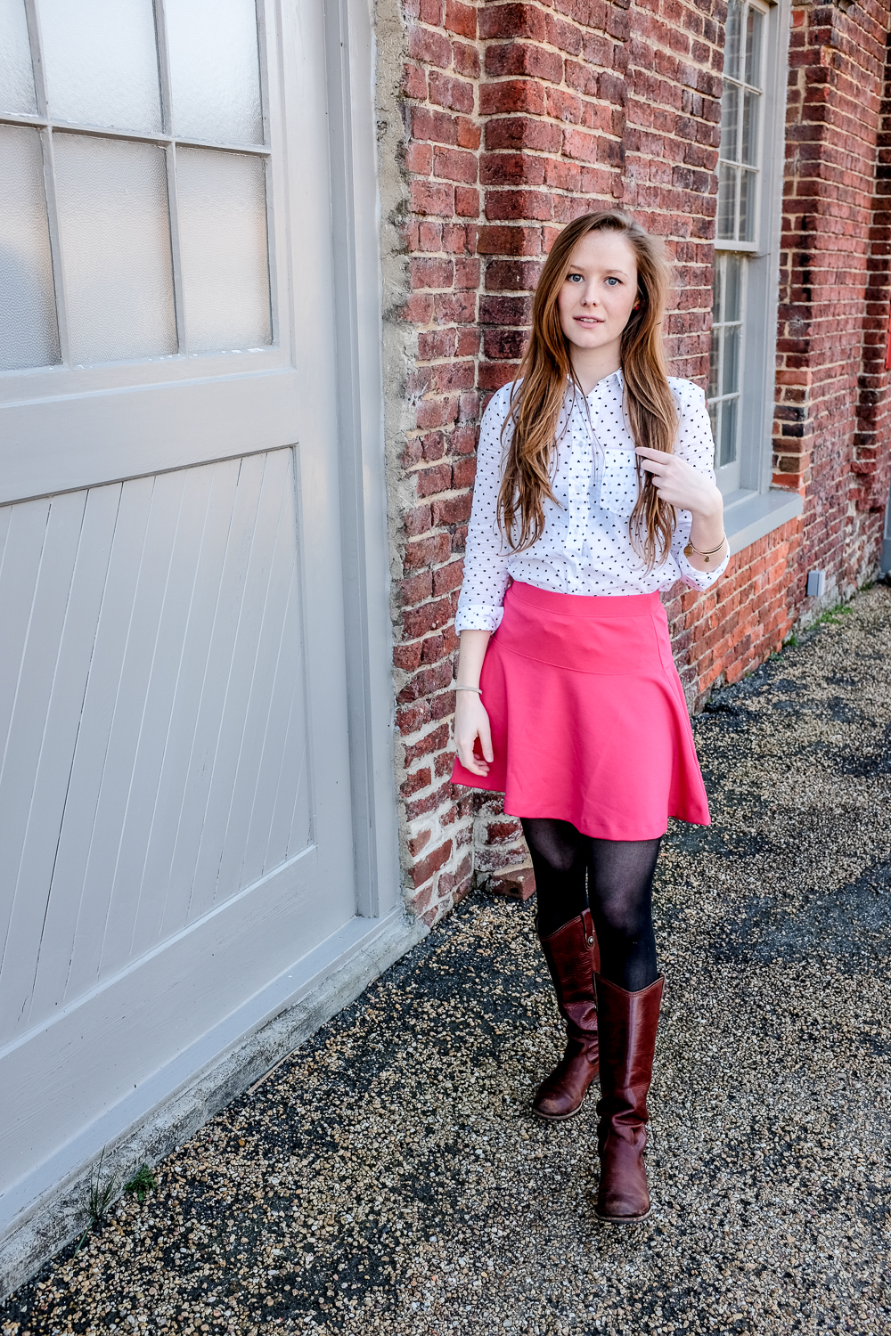 It was a magnificent un-seasonably warm day on Sunday, so I took full advantage of the weather (and the fact that it’s Valentine’s Day week) and pulled on my brightest pink skirt over my favorite heart spotted button down. I’m a sucker for themes, so give me a holiday and I’ll dress to the nines. I’m not usually a “pink girl,” but you better believe I’ll be wearing pink on Saturday, and I won’t be sorry about it.