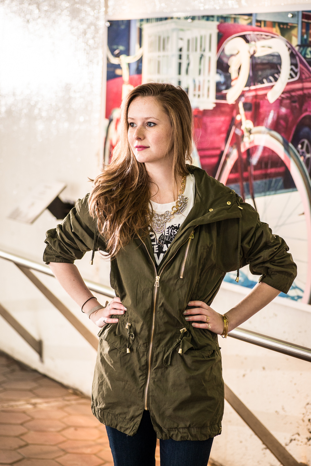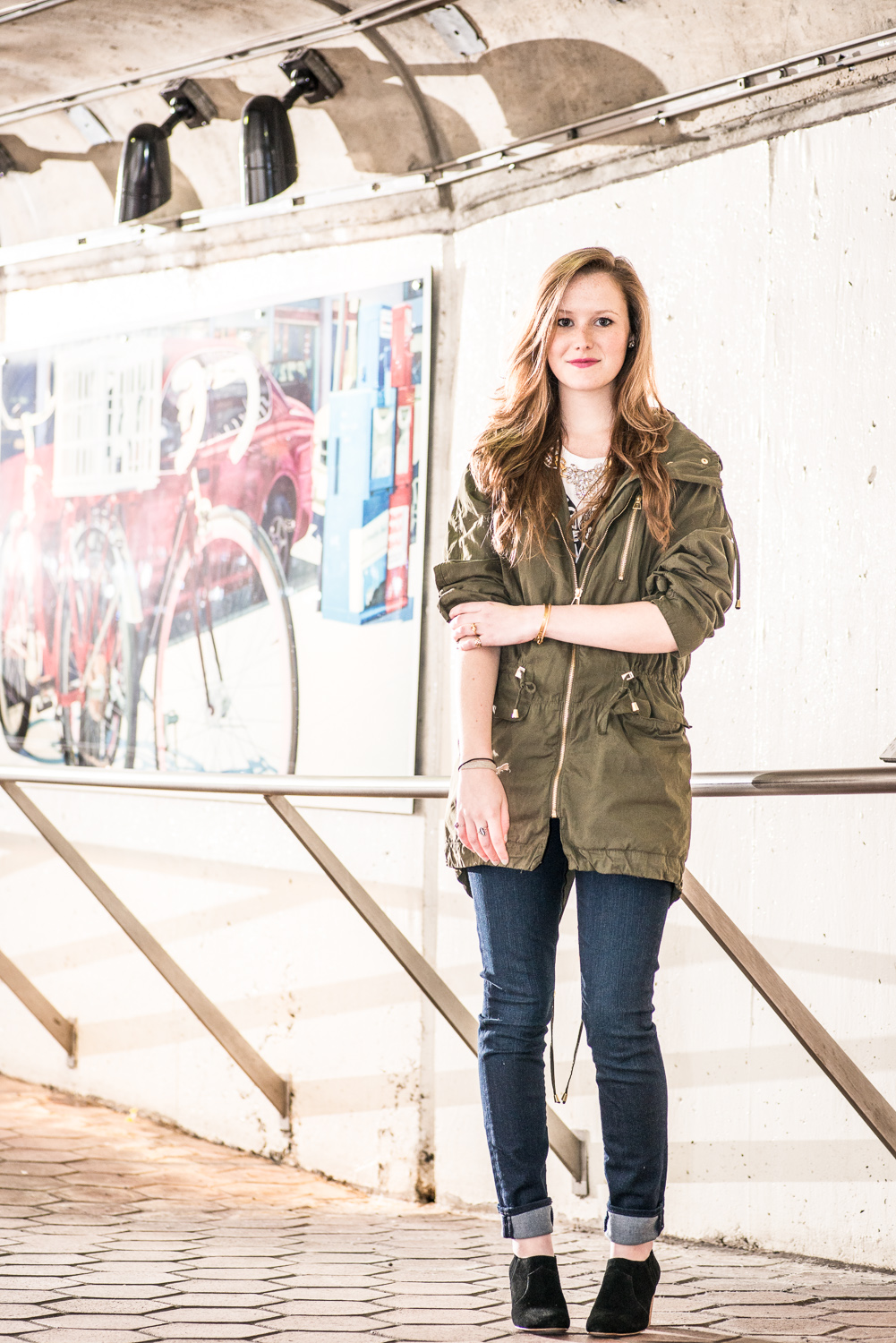Wearing: Nicole Miller bralette (I found mine at T.J. Maxx, but there are so many cute ones at A.E.!), D.Jeans (similar), Green Envelope top (similar), Franco Sarto sandals, Stella & Dot necklace and wrap bracelet // Photos taken by Bryan Wallace